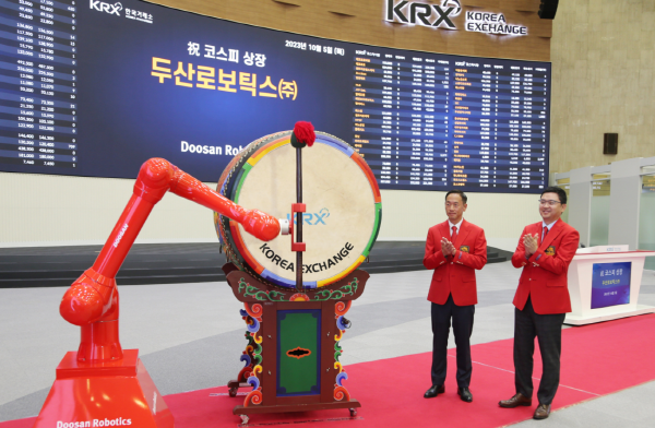 지난 10월 5일 코스피에 상장한 두산로보틱스가 '대장주'에 등극했다. 두산로보틱스는 상장 당일 시가총액이 3조 3317억원에 달하면서 코스피 주도주로 자리잡았다.