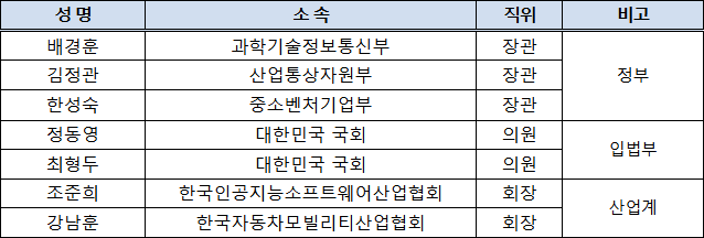 이날 행사에는 배경훈 과기정통부 장관, 임문영 국가인공지능전략위원회 부위원장, 산업부‧중기부 차관, 정동영‧이성윤(더불어민주당)·최형두 국회의원(국민의힘), 조준희 한국인공지능소프트웨어산업협회장, 강남훈 한국자동차모빌리티산업협회장, 임우형 LG AI연구원 원장, 조길성 두산로보틱스 대표, 황희 카카오헬스케어 대표, 민기식 SK쉴더스 대표, 윤정원 AWS 코리아 대표, 장영재 KAIST 교수 등 피지컬AI 관련 기술 산‧학‧연‧관 핵심 주체들이 참석할 예정이다.