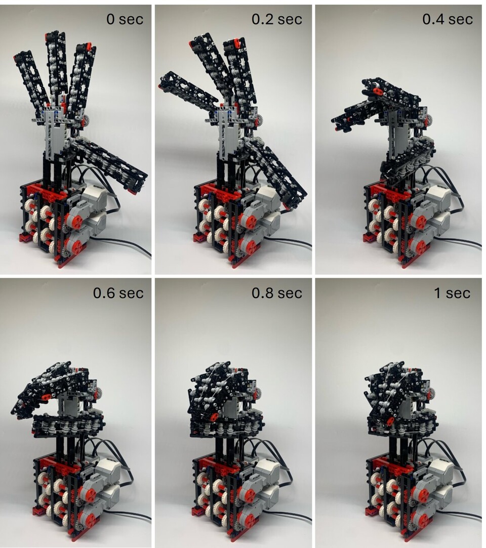성능 테스트 결과는 놀라웠다. 벤치마크 테스트에서 이 레고 슬롯 버그 핸드는 전문 3D 프린팅 소프트핸드가 구현하는 그립력의 약 90%를 달성했고, 약 1초 만에 열고 닫는 사이클을 완료할 수 있는 것으로 전해졌다. 또 레고 클러치 기어로 구현한 소프트 시너지 메커니즘 덕분에 손가락이 공, 컵 등 다양한 형태의 물체에 자동으로 적응할 수 있다.