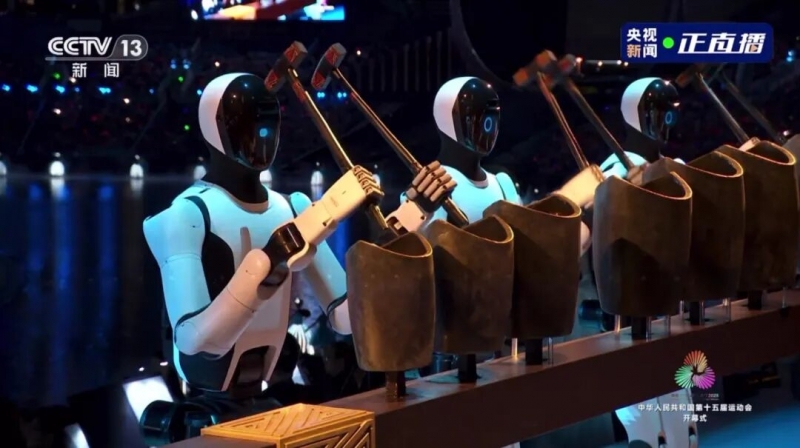 유비테크 ‘워커 S2’ 세 대가 개막식 공연…청동 악기 ‘거우댜오’ 전통문화 선율 선사