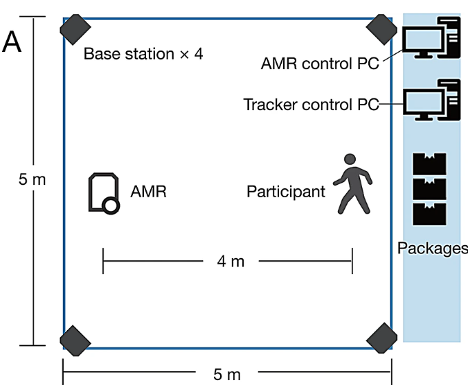 실험에서는 AMR의 속도, 최종 정지 거리, 소포의 무게를 조정하며 참가자의 보행 속도와 일시 멈춤 빈도(망설임 확률)를 측정했다. 결과적으로 로봇이 가까울수록 보행 속도는 감소하고, 멈춤 빈도는 증가했다. 연구팀은 이를 “로봇과의 접촉 직전, 신중하게 행동하려는 심리적 반응”으로 해석했다.