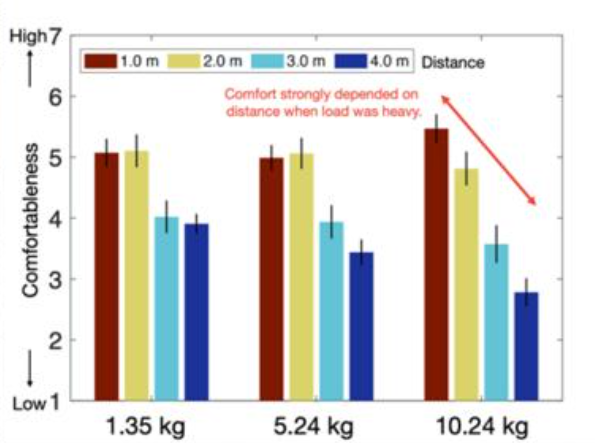 특히 짐이 무거울수록 로봇이 더 가까이 접근해야 한다는 결과는, 향후 보조 배송이나 산업 현장 협동 로봇 설계 시 접근 거리·속도 제어·공간 침해 방지 기준을 마련하는 데 실질적인 시사점을 제공한다.