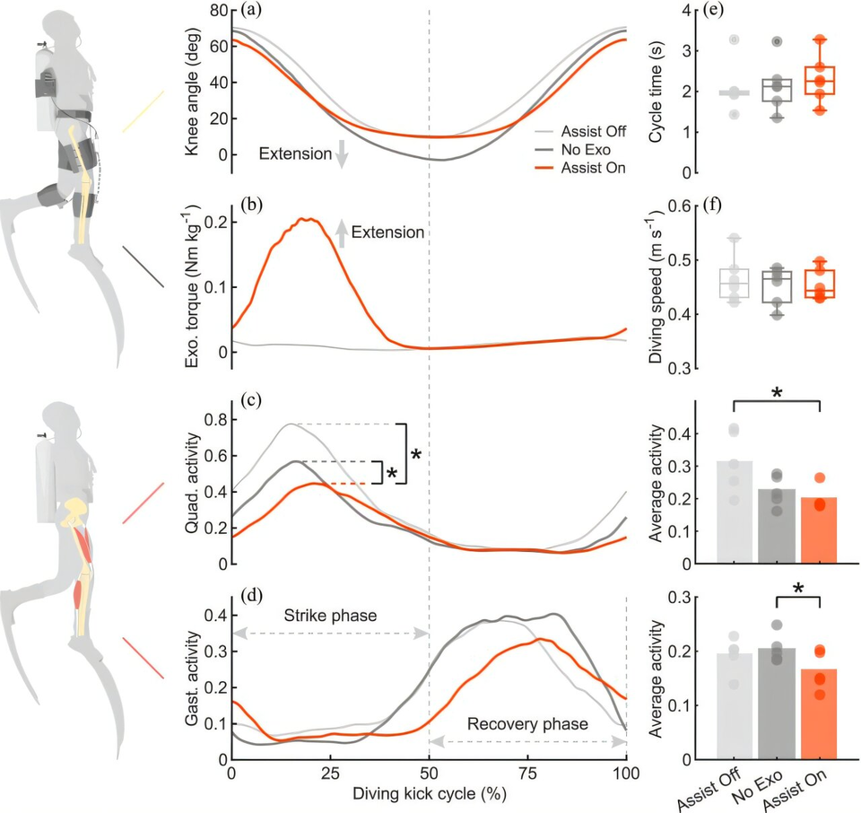 6명의 숙련된 다이버를 대상으로 테스트한 결과 동력 외골격을 착용한 다이버들은 외골격 없이 일반 다이빙을 할 때와 비교해 △공기 소비량 22.7% 감소 △허벅지 앞 근육 활성화 20.9% 감소 △장딴지 근육 활성화 20.6% 감소 등 효과를 나타냈다. 다이버들은 로봇의 보조에 잘 적응했으며, 자연스러운 움직임 패턴을 보였고 에너지 효율성이 향상됐다.