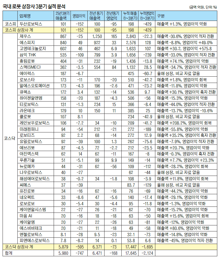 ◇28개 기업은 적자…두산로보틱스 포함 주요 슬롯 소셜 카지노기업 실적 부진