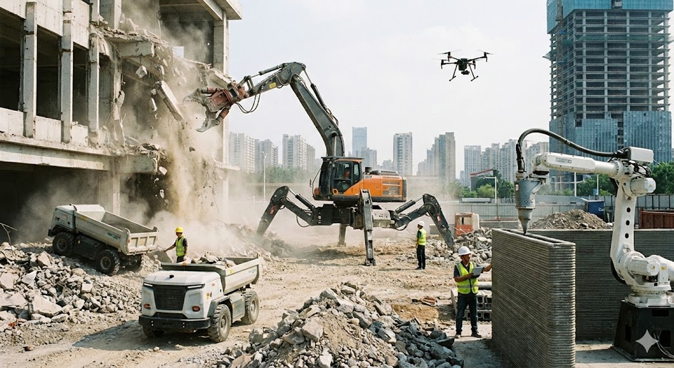 기술적인 측면에서 건설 로봇은 인공지능(AI), 머신러닝, 로봇기술이 유기적으로 융합하고 있다. 최신 건설 로봇들은 라이다, GPS, 첨단 내비게이션 등 기술의 적용으로 현장 내에서 장애물을 피해 자율 주행하거나, 머신러닝 알고리즘을 통해 새로운 작업 방식을 스스로 학습하고 정밀하게 실행하는 단계로 진화하고 있다. 특히 디지털 도면을 기반으로 구조물 전체를 실물로 구현하는 ‘3D 프린팅 로봇’ 기술의 혁신이 두드러지고 있다. 게다가 측량용 드론의 도입 확산으로, 드론이 제공하는 조감도를 통해 관리자들은 현장 상황을 보다 입체적으로 파악하고, 정밀한 공정 계획을 수립할 수 있게 됐다.