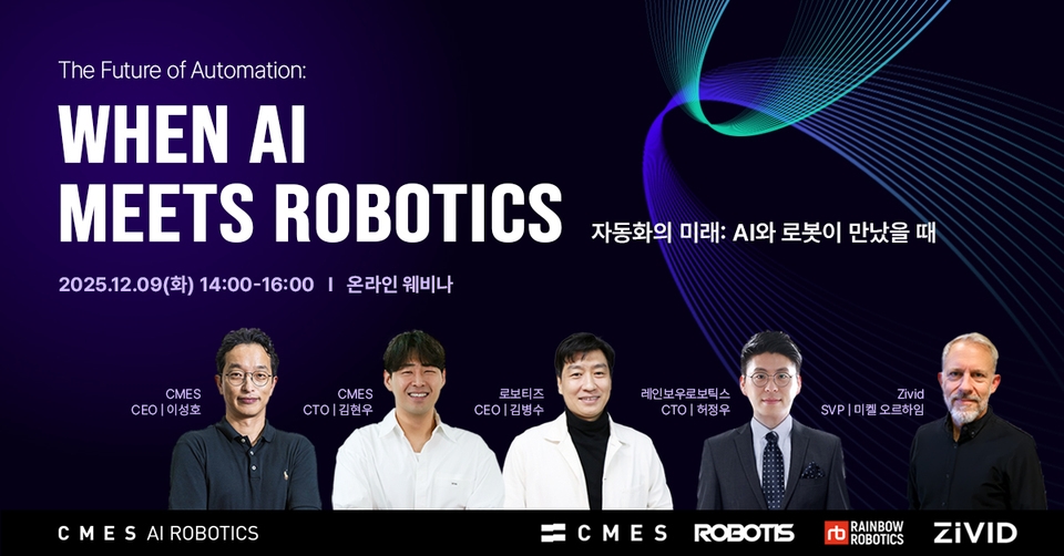 이성호 씨메스 대표의 개회사를 시작으로 김현우 CTO(최고기술책임자)가 ‘로봇을 넘어 에이전트로: 피지컬 AI로 진화하는 물류·제조 플랫폼’이라는 주제로 피지컬 AI를 통한 로봇 자동화의 현재 기술과 앞으로의 기술적 방향성을 제시한다. 그 다음으로는 김병수 로보티즈 대표가 ‘고철에 담은 생명, 피지컬 AI’라는 주제로, 피지컬 AI 시대의 패러다임 전환과 비전언어행동(VLA) 기반 로봇 기술로의 진화를 설명한다. 이어서, 허정우 레인보우로보틱스 CTO(최고기술책임자)는 ‘레인보우로보틱스의 현재와 미래’를 주제로 로보틱스 기술의 현재와 미래를 소개하며, 지능형 로봇 자동화를 위한 업체 간 협력 방안을 공유한다. 마지막으로 미켈 오르하임 지비드 SVP(글로벌 마케팅·영업 총괄 부사장)는 ‘3D 머신 비전이 이끄는 물리적 AI와 지능형 자동화의 미래’를 주제로 고정밀 3D 머신 비전 기술이 지능형 자동화와 피지컬 AI의 핵심 기술로서 로봇 자동화에 가져올 변화를 중심으로 발표한다. 세션 뒤에는 Q&A 시간이 마련돼 참여 기업과 직접 소통하며 현장 중심의 인사이트를 확보할 수 있다.