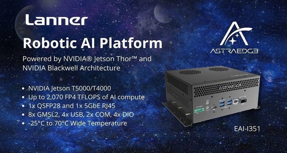 대만 랜너 일렉트로닉스(Lanner Electronics)가 차세대 물리적 인공지능(AI)용으로 설계된 로봇 AI 플랫폼인 ‘EAI-I351’을 출시했다고 로보틱스247이 19일(현지시간) 보도했다.